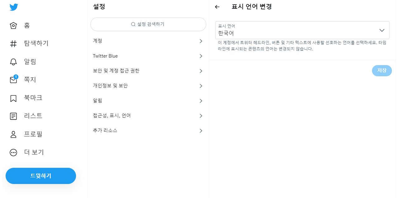 [트위터 언어 설정] 트위터 언어 설정 한국어로 변경하기