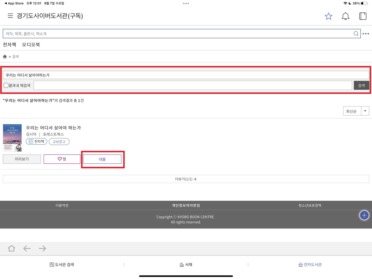 - 모바일의 경우 교보문고앱설치 > 경기도사이버도서관(구독)으로 이용